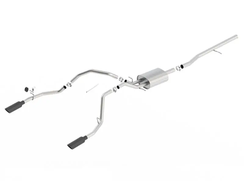 - This system features a black chrome finish on T-304 stainless steel tips. Borla(r) Stainless Steel Polish p# 21461 is NOT recommended with these black chrome tips. We suggest cleaning the tips with hot water and a microfiber cloth. Borla(r) Cat-Back(tm) and Axle-Back exhaust systems feature patented straight-through and multi-core technology designed to unleash hidden horsepower. Increased exhaust velocity adds power, driving excitement, fuel economy, and the distinctive Borla(r) Sound of Power respected by motoring enthusiasts everywhere. Each system is built from premium T-304 stainless steel, superior to T-400 series knockoffs (such as 409), to give you the absolute best in performance and durability. Ultra-smooth mandrel bends ensure maximum flow & power, and precision computer-controlled CNC manufacturing ensures an accurate fit. Best of all, Borla(r) stands behind every system with a Million-Mile Warranty. Just what you’d expect from the world’s most experienced (and most winning) exhaust brand.